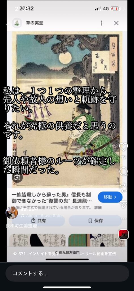 生前整理が終わりを迎えようとしていた頃、なんと1か月目を覚まさなかったお母様が奇跡的に目を覚ましたと御依頼者様から聞き、感極まりました。。長家の資料を寄贈する話になっていたので、長家の御先祖様が助けてくれたのかもしれないと心に思いました。本当に良かったです!